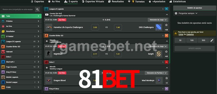 O 81bet oferece uma grande seleção de opções de apostas em e-sports com probabilidades competitivas